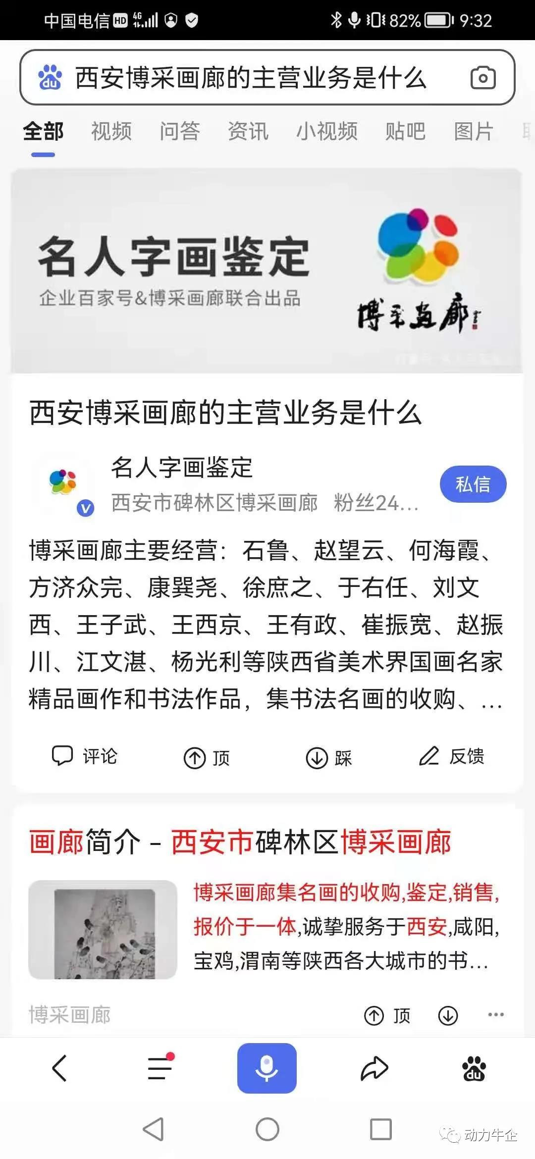 現在,當你在手機百度中輸入“西安博采畫廊的主營業務”,會出現如下頁面。