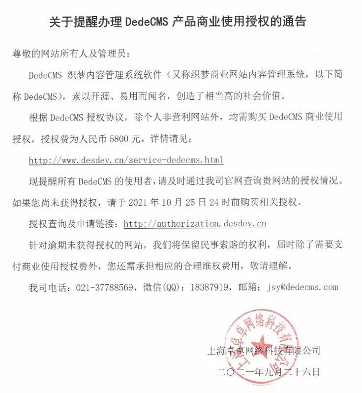 均需購買DedeCMS商業使用授權