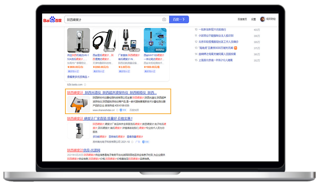 新時代關鍵詞:陜西硬度計、陜西光譜儀、陜西直讀硬度計、陜西石油硬度計、西安硬度計等,均在百度首頁展現,準確鎖定有需求的客戶。