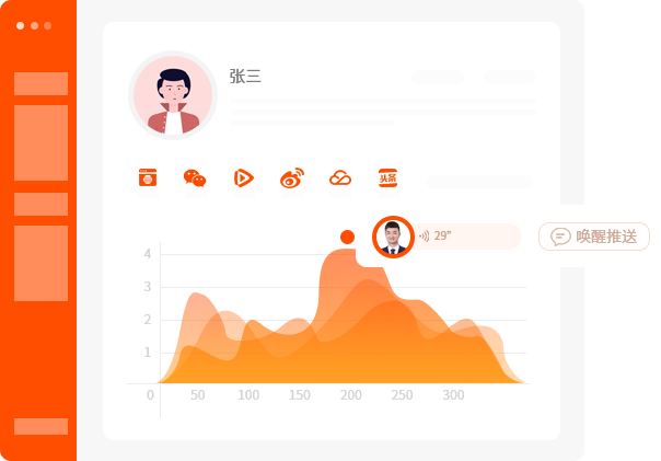 系統按積分規則對用戶的各類 行為進行積分匯總,不同的行 為賦值有差別,如:訪問公司 官網的分值和下載白皮書的不 同,從而測量客戶對產品和服 務的意向度。